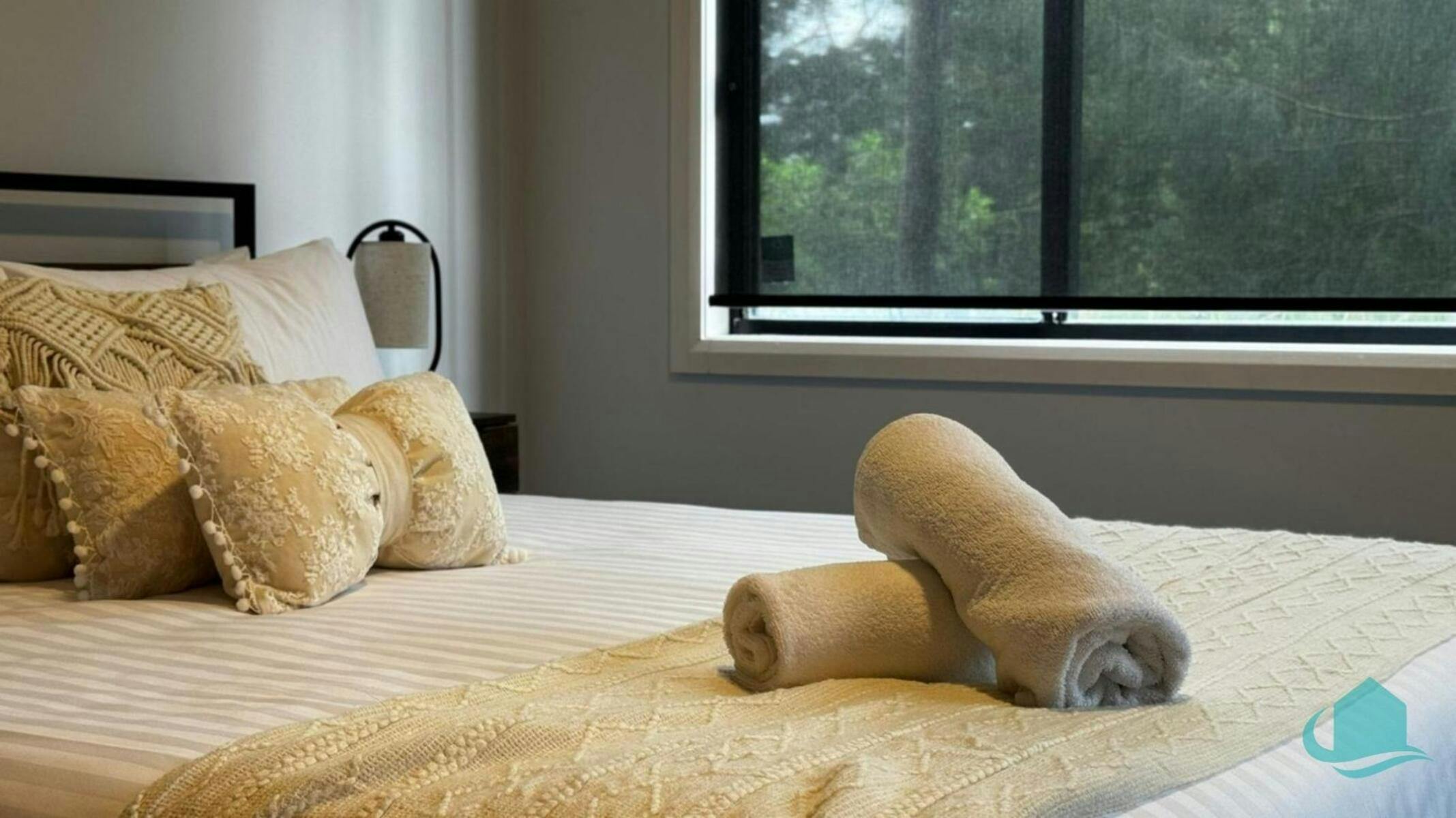 Upstairs, a realm of luxury awaits, with deluxe bedrooms boasting walk-in robes and lavish bathrooms. Relax and unwind in the master suite, featuring dual walk-in robes, a sumptuous ensuite with a freestanding bath, and a Juliet balcony offering panoramic views of the surrounding beauty. The ground floor offers versatility and convenience with a second master suite.